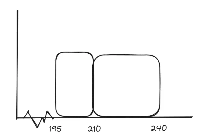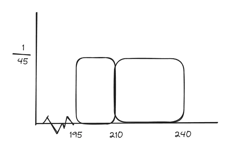we need to find out that ratio of the rectangle from 195 to 210 in relation to the entire rectangle