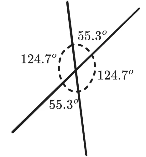 L1=[2,2]+s[−1,3] L2=[5,1]+t[3,4] To get the acute angle, do the dot product a⋅b=∣a∣∣b∣cosθ cosθ=5109 θ=55.3o The obtuse angle would be θ=124.7o