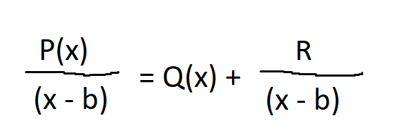 P(x) = divisor * quotient + remainder P(x) = (x-b) * Q(x) + R