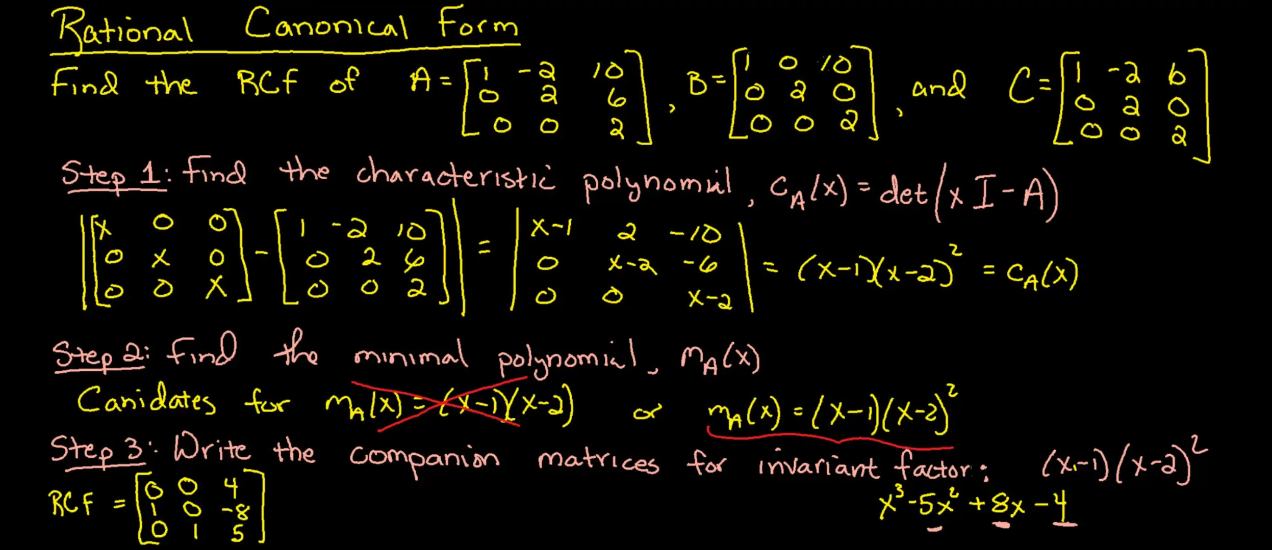 - Write the Matrix Definition of Cyclic Subspace of the expanded version. This is your rational canonical form.