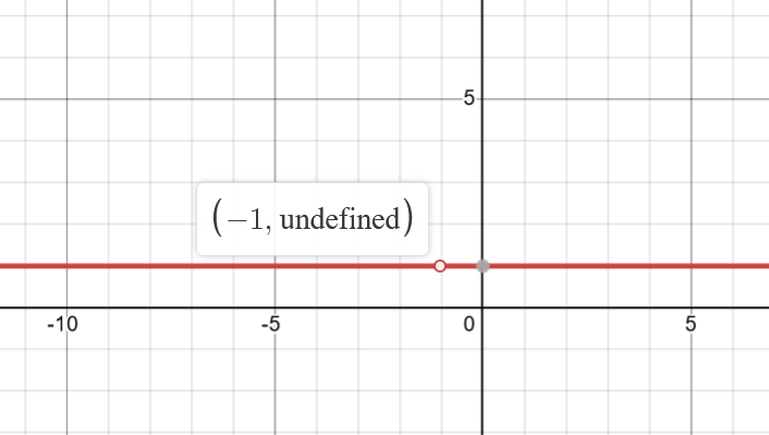 Like . these cancel out, so y = 1. but, you cannot divide by zero when x = -1, so it occurs to have a hole.