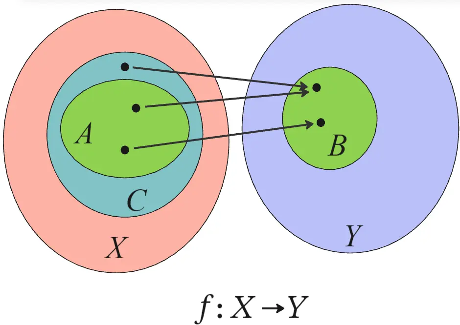 Definition With f:X→Y as a Function The preimage of a set B⊂Y under f denoted as f−1[B] is the Subset of X defined by: f−1[B]={x∈X∣f(x)⊂B}