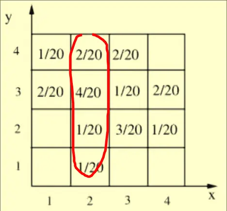 The individual PMF from a Joint PMF. pX(x)=P(X=x)=∑yP(X=x,Y=y)=∑ypX,Y(x,y)
