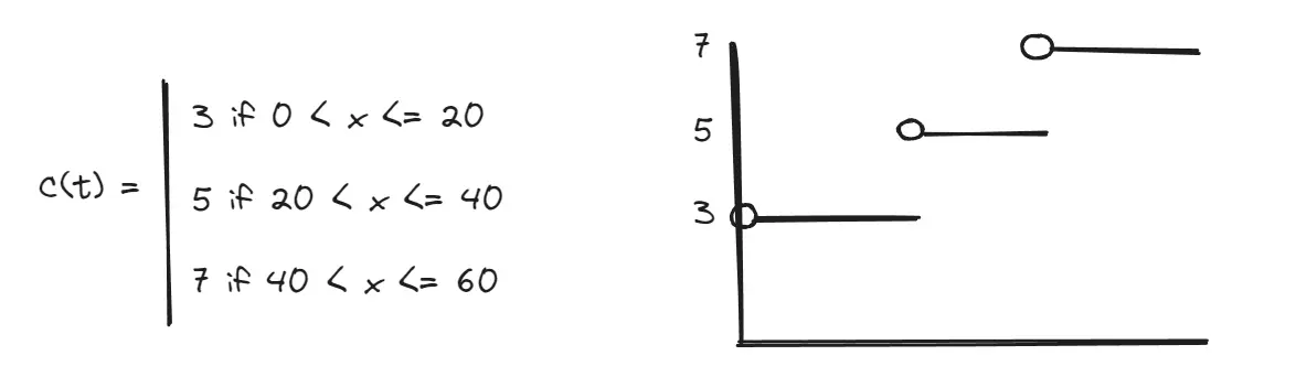 Going from one value to another value. At x: