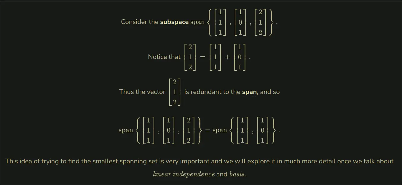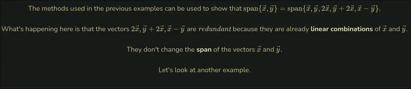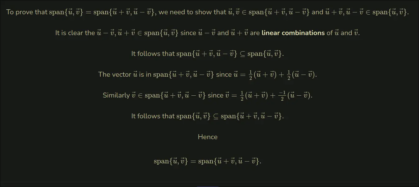You can prove equivalent spans because most spans are redundant linear combinations that can be derived from other sets.