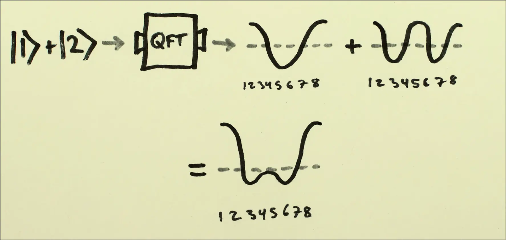 Inputting a Superposition of Qubit will result in a Superposition of sine waves. This allows for Destructive Interference if the superpositions differ by a constant factor.