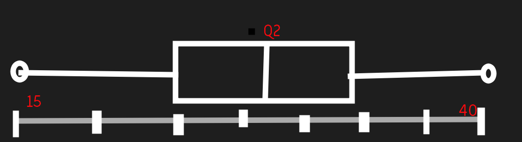 Example raw data: 31 28 28 30 20 25 38 40 26 28 15 21 28 36 25 16 21 34 37 30 23 24 36 32 25 Again, sort it from least to greatest. Q1 is 25 percentile Q2 is 50 percentile Q3 is 75 percentile Box and Whisker plot