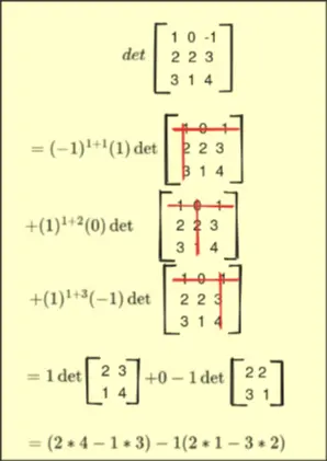 If M=[mij]∈Mn×n(R) and 1≤i≤n Then, det(M)=∑j=1n(−1)i+jmijdet(Mij)