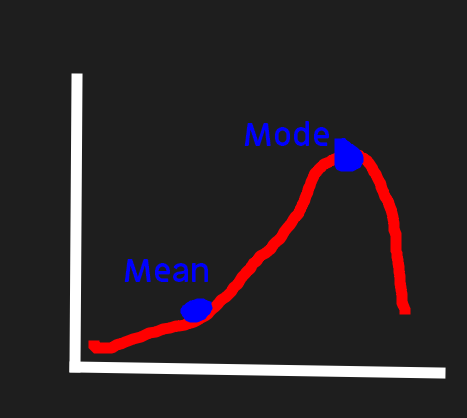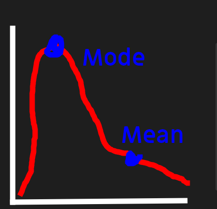 Positive Skew / Left Skew The mode is more than the mean Median somewhere in the middle of all this data Negative Skew / Right Skew The mode if less than the mean Again, median is somewhere between the 2.