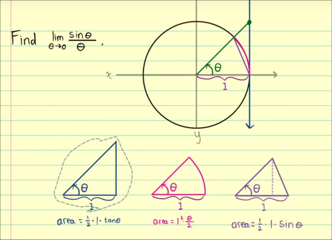 We make 3 triangles, the middle triangle is f(x) which we will squeeze between h(x) and g(x)