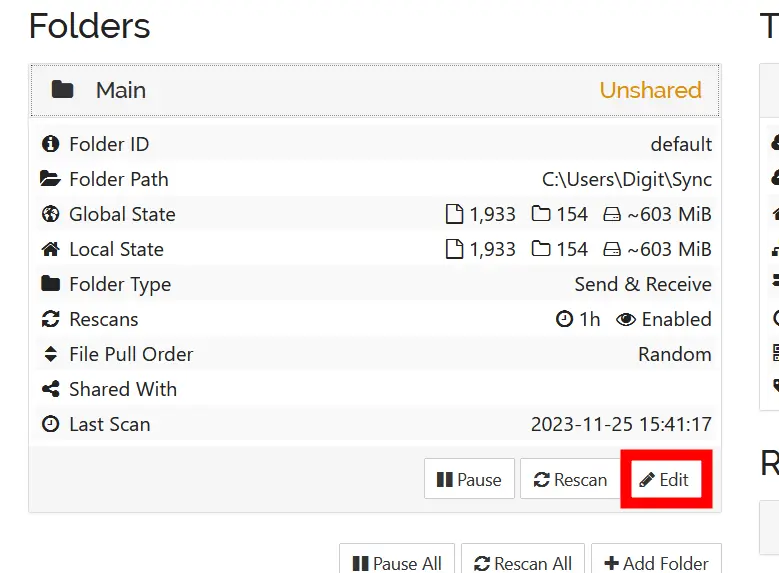Then on the other computer, click ‘Add’ and then rename that folder path.