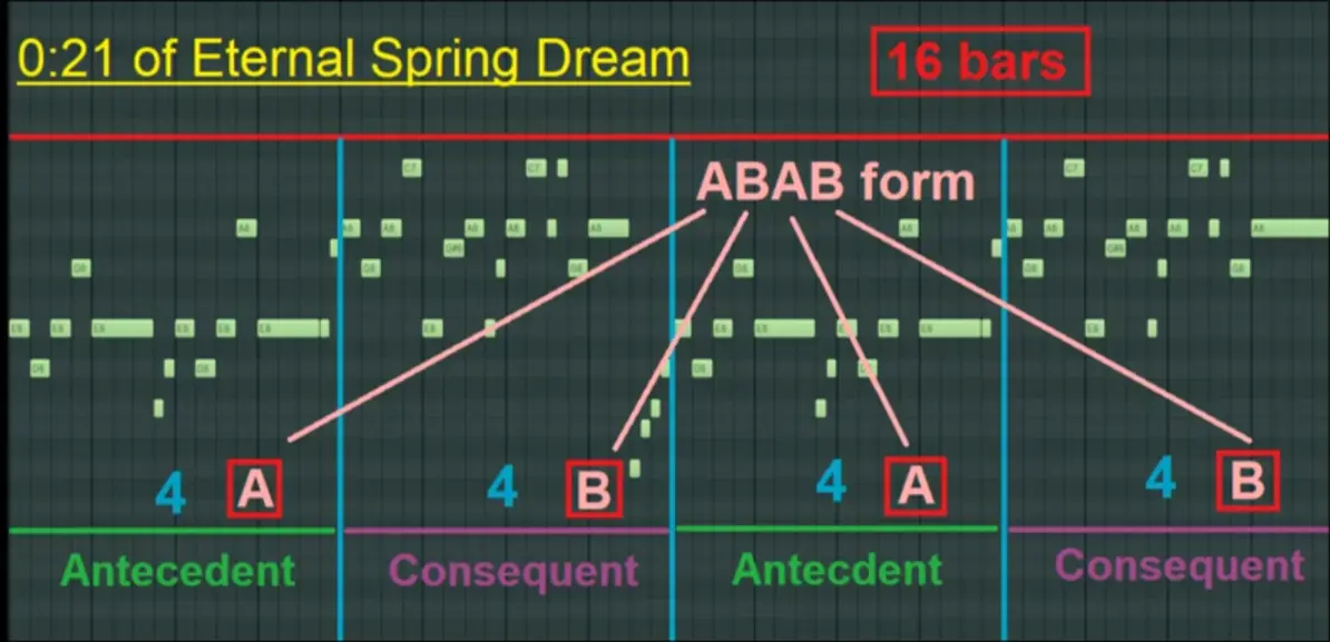 The splitting of a melody into patterns of Antecedent and Consequents.