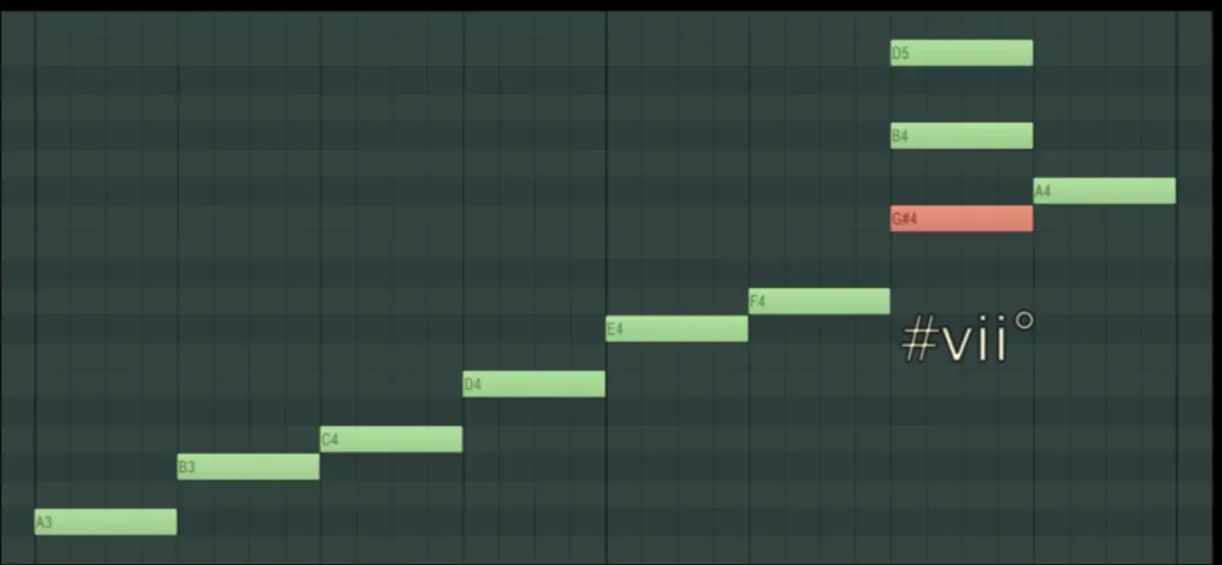 A common practice in Touhou Music where the VII chord is diminished to #vii^o to make the song mysterious.