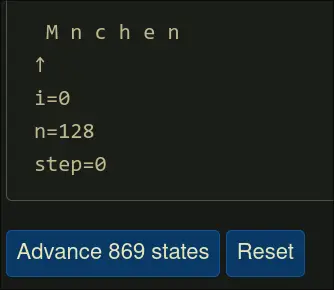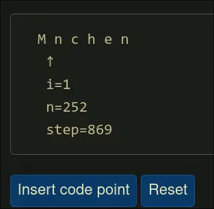Mnchen, increment i by 1 each time, and then incrementneverytimeisurpasses the length of the literal ascii. Then, at the end, insert the ascii character ofninto the corresponding position