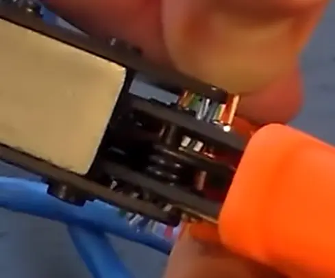 - Use the Crimping Tool to cut off excess wire so that they are 0.5”
