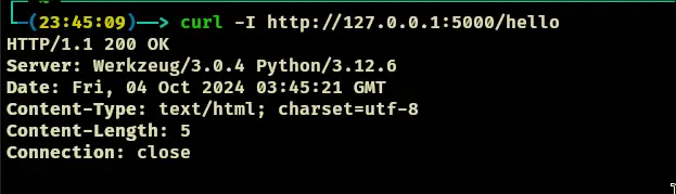 curl -I http://127.0.0.1:5000/hello
