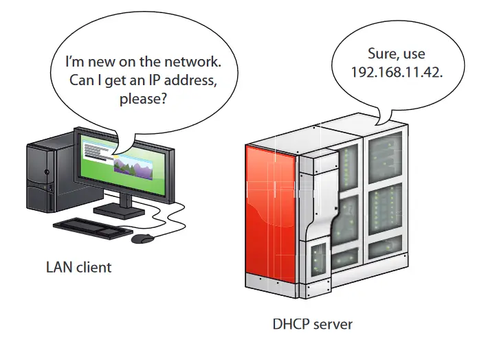 - DHCP server sends a Broadcast Frame containing all possible IP addresses device can have. These IP’s are given on a lease meaning they can expire if the device is unable to renew it automatically.