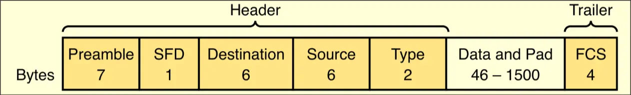 - Start Frame Delimitter: Signifies that next byte is start of destination address