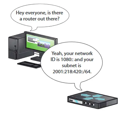 - The router on the network replies with a Router Advertisement (RA) message and gives that device its global IP address.