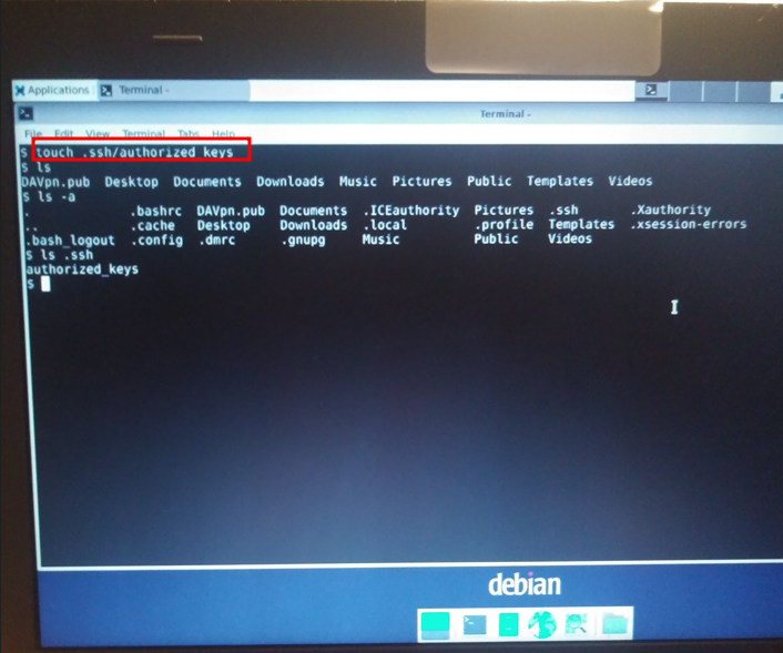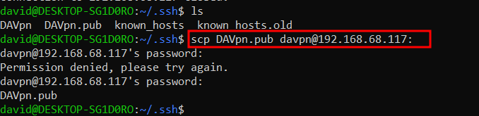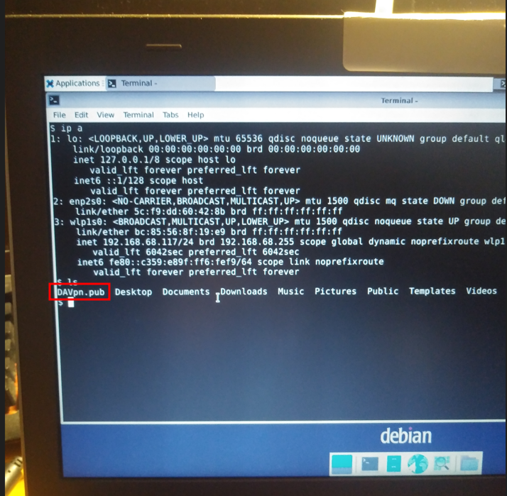 Now, if I ls in the VPN machine, I can see the .pub file.