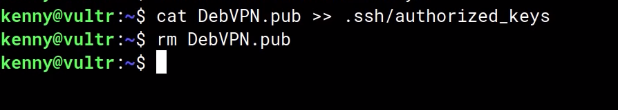 cat [.pubfile] >> ~/.ssh/authorized_keys