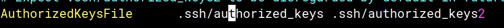 AuthorizedKeysFile .ssh/authorized_keys .ssh/authorized_keys2