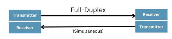 There are designated transmitter and receiver endpoints. Data can be transmit and received at the same time.
