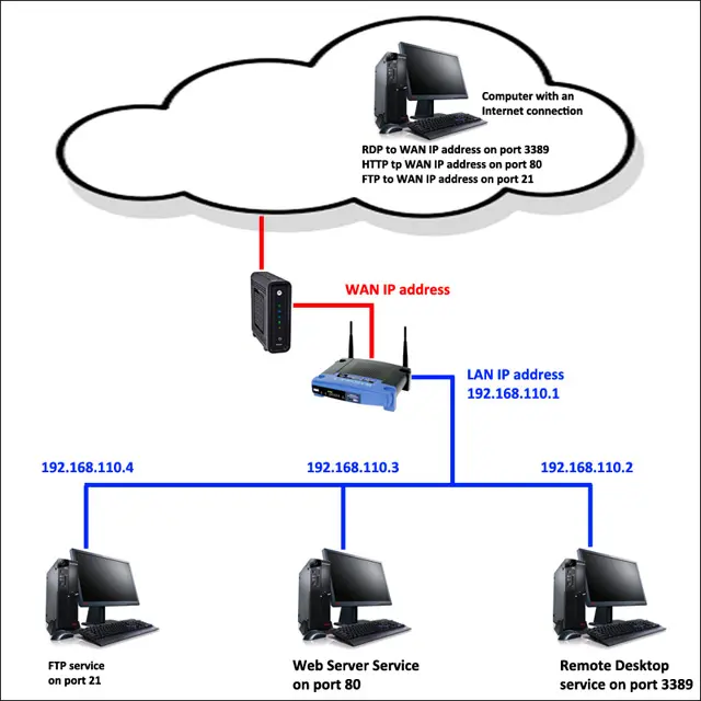 Port forwarding allows you to map a port on the global address to a local address in the LAN.