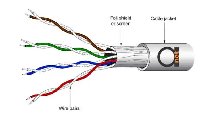 Twisted pairs of copper wire, shielded with a foil screen before being placed in a common jacket. The foil is to avoid EMI