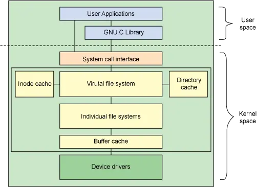 Concepts glibc Inode Cache Directory Cache Buffer Cache Linux IO System Calls Interface Virtual File System File System Drivers