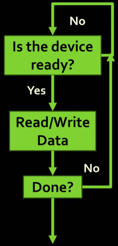 A method for IO communication that involves waiting for IO signals. Simple to implement Wastes CPU Time In constrast to System Interrupt