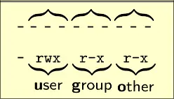 File Permissions The permissions for a File For three groups: Owning user Owning group Other users Permission types: Read (r) Write (w) Execute (x) Directory Permissions Read (r) - you can run ls Write (w) - you can create and delete files in directory Execute (x) You can cd into the directory and access files according to their file permissions