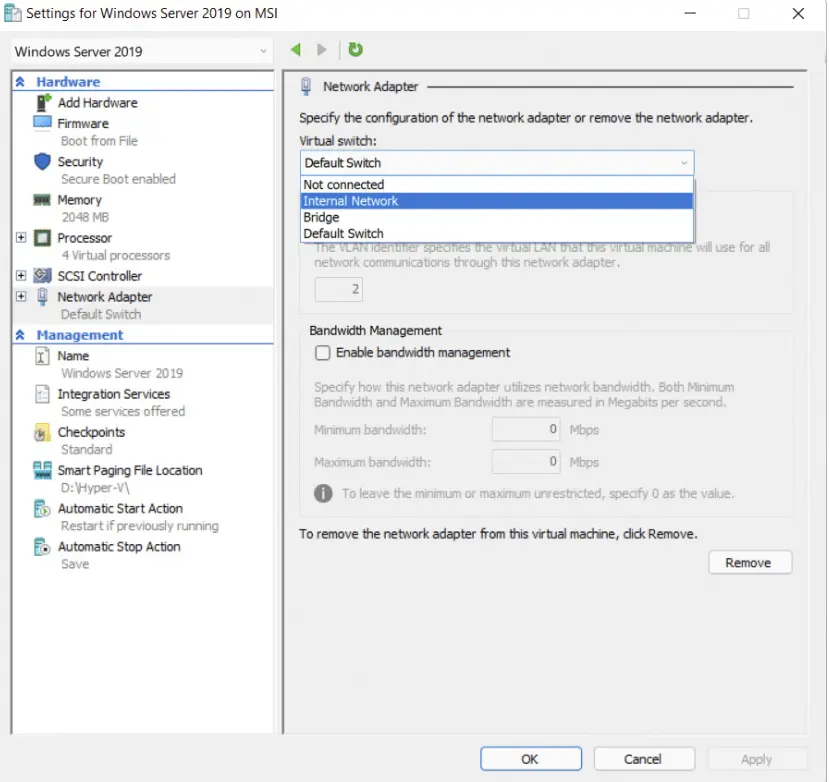 - Internal Network: Allowing VM to communicate with other VM’s on the hypervisor