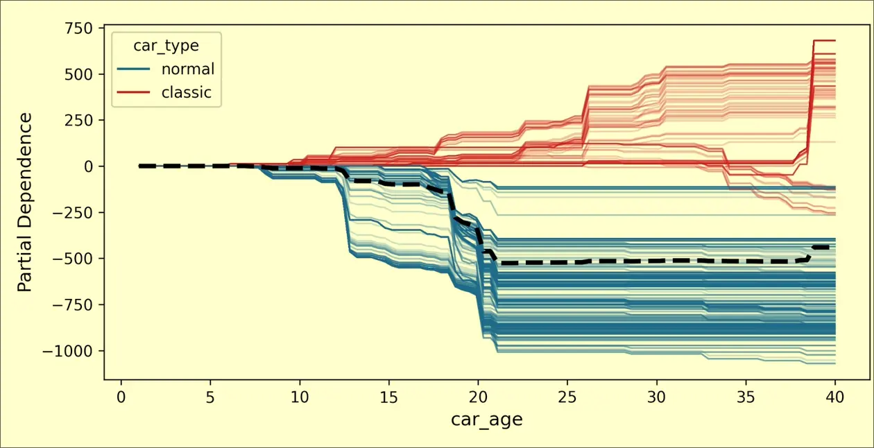 A plot of the marginal effect one or two features has on the predicted outcome of a ML model.