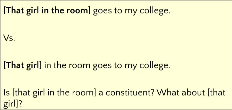 A Constituency Test that assesses if segments of a Phrase still have meaning if placed within specific validation sentences.