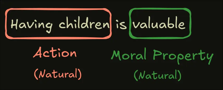 Each moral fact has an: Action (Object, State of affairs) Moral property (Good, Bad, Just, Permissible, Valuable) Naturalists argue that the action can be natural and the moral property can be natural aswell.