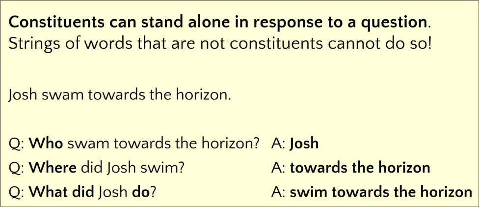A Constituency Test that involves checking if the Phrase could stand as an answer to a question.