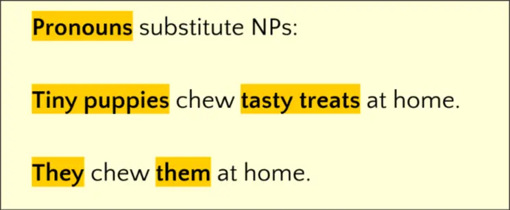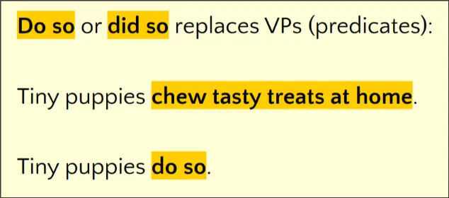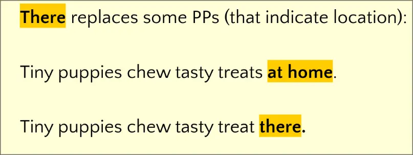 A Constituency Test that involves replacing Phrases with others to check if the same meaning holds. Specific Substitutions Pronoun substitute NPs There replaces PPs Did/Do so replaces VPs
