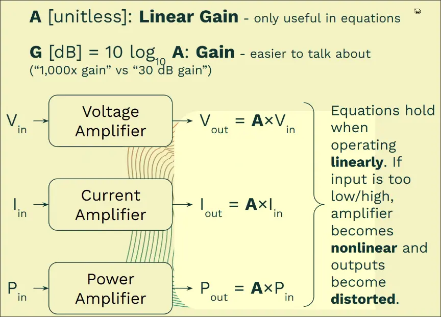 Takes one voltage level and takes it higher. Often the amplification is by a linear constant measured logarithmically.