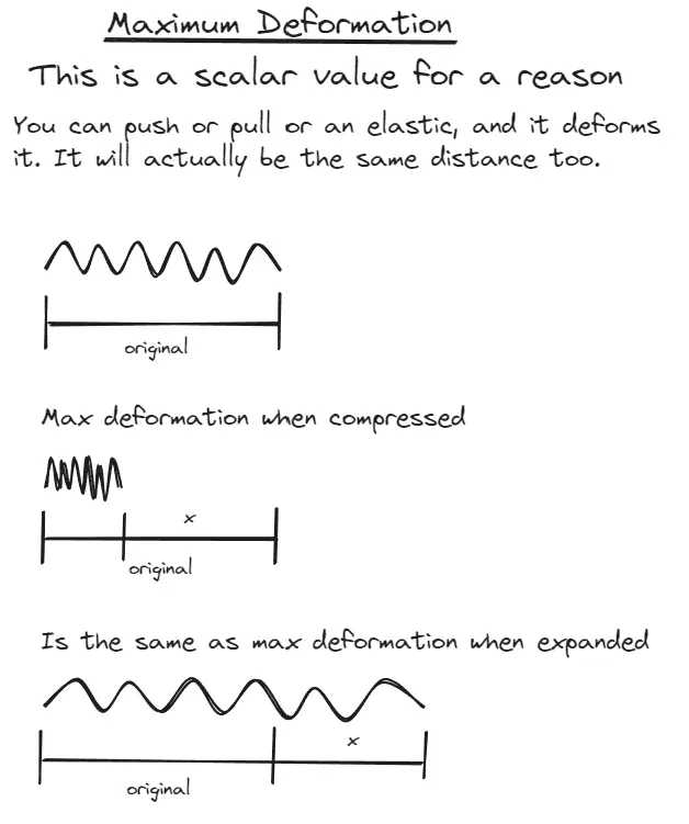 Maximum deformation is the same regardless of if you compress or expand the elastic