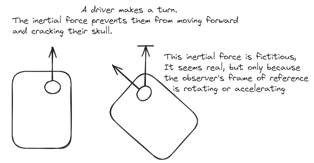 These are forces that may seem real, but they only exist due to the observer’s frame of reference.