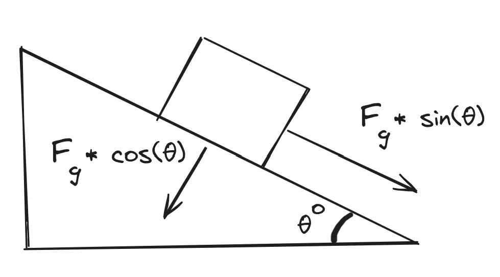 We need to convert this downwards vector into 2 vectors that are parallel & perpendicular to our box