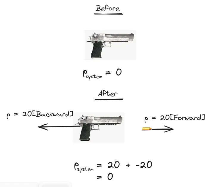Recoil as a concept exists because the momentum before shot must equal the momentum after shot.