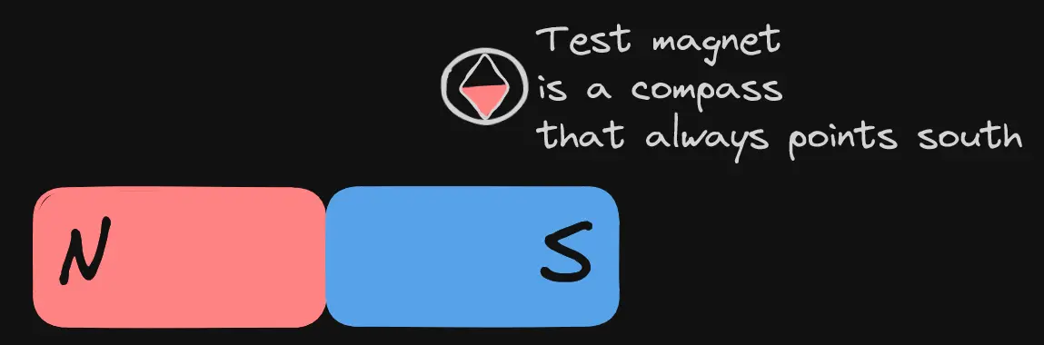 When you have a magnet, the magnetic field is created by putting test magnets which are compasses and mapping which direction they point