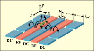 2D traps fabricated on a chip where Ions float on the surface of the chip.