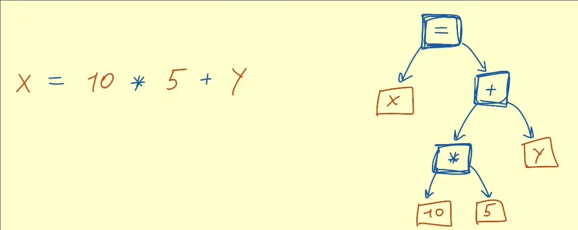 It establishes hierarchy in how the code should be interpreted. Start at the root node, and then evaluate each child before the next computation.
