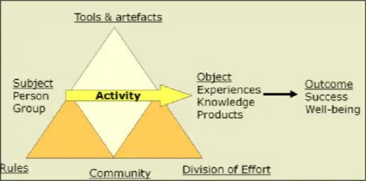 A theory that explains human behavior through activity. Can help to identify tensions between elements of a system.