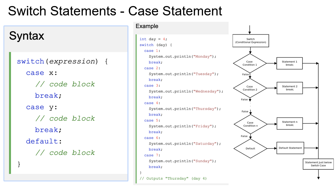āBetterā method of If Statement so, switch (expression), then every case compares the expression with a value.