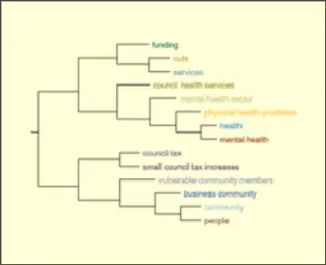 A visualization of Qualitative Data during Qualitative Data Analysis. Represents words in relation to eachother.