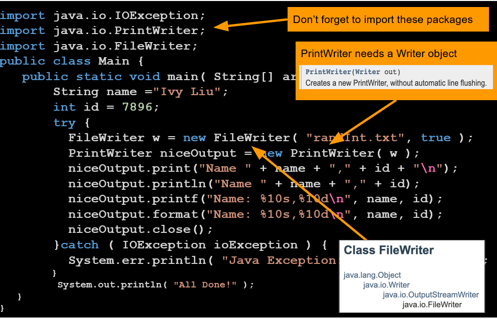 Call prints in the printwriter object